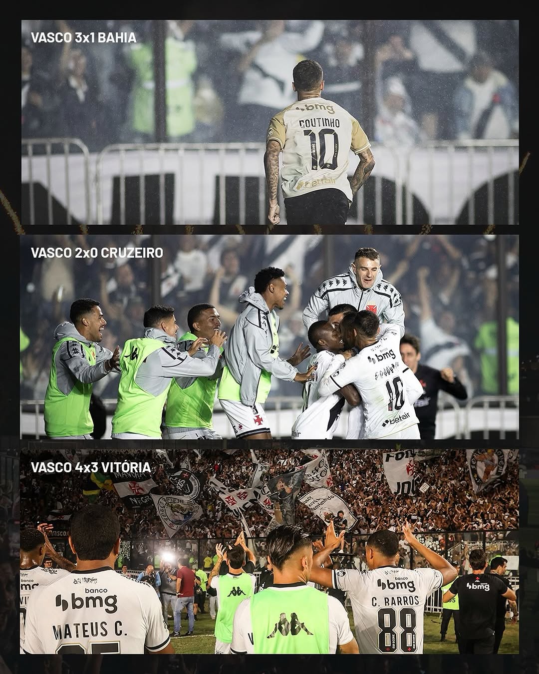 Vasco posta fotos dos últimos 3 jogos em São Januário, que terminaram com 3 vitórias vascaínas