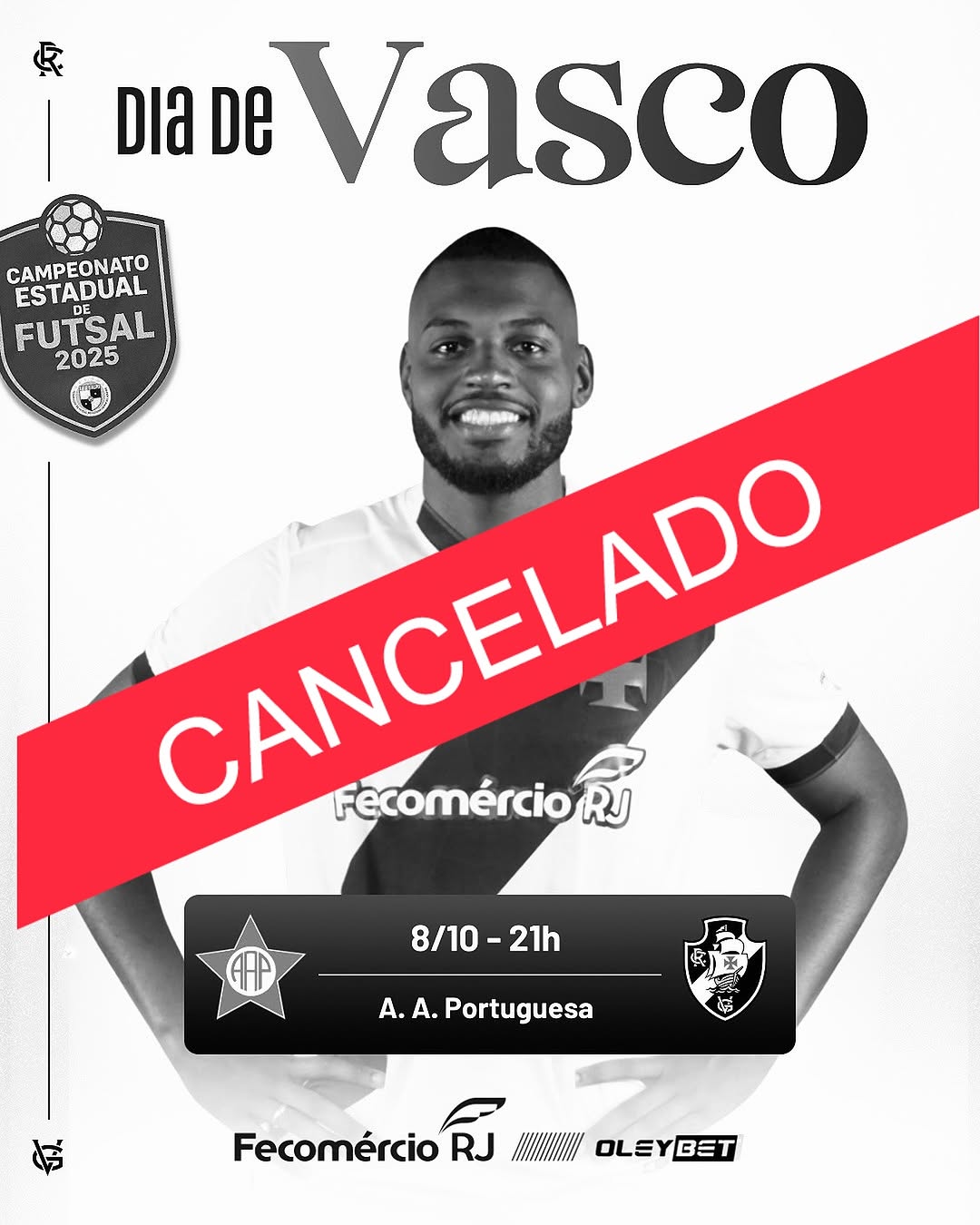 Por questões climáticas, a partida entre Portuguesa e Vasco, pela 4ª rodada do Estadual, que ocorreria hoje, está cancelada. 🌧️🚫