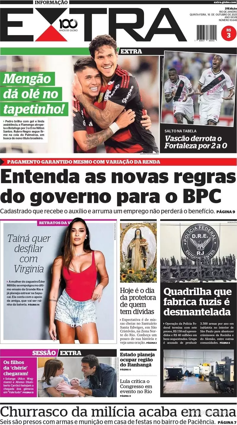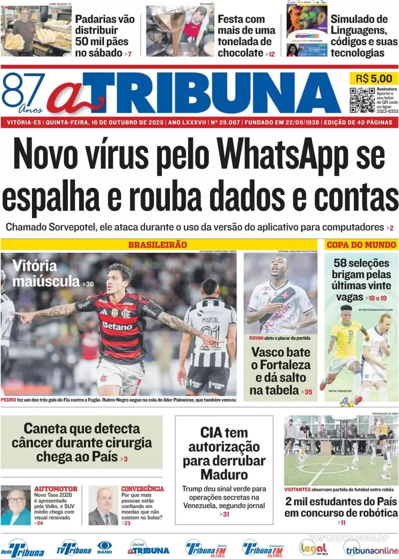 Pelo Campeonato Brasileiro, o Vasco venceu o Fortaleza por 2 a 0 na Arena Castelão. Veja as capas dos jornais.