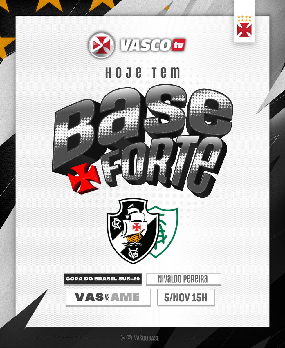 Sub-20: Vasco enfrenta o América-MG no Nivaldo Pereira pelo jogo de volta das oitavas da Copa do Brasil nesta 4ª-feira às 15h com VascoTV