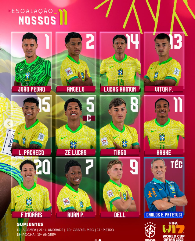 Seleção brasileira escalada para duelo contra Portugal, pela semifinal do Mundial sub-17.