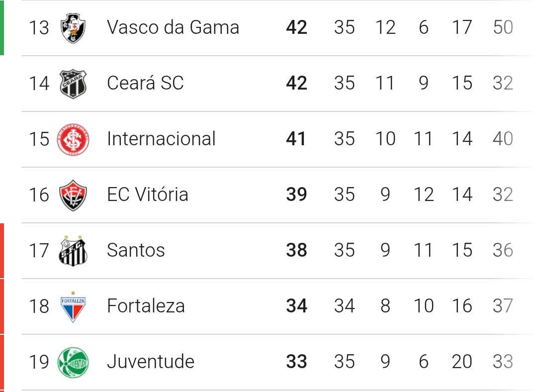 👻 Sequência dos times que ainda não fizeram pelo menos 43 pontos no Brasileirão: