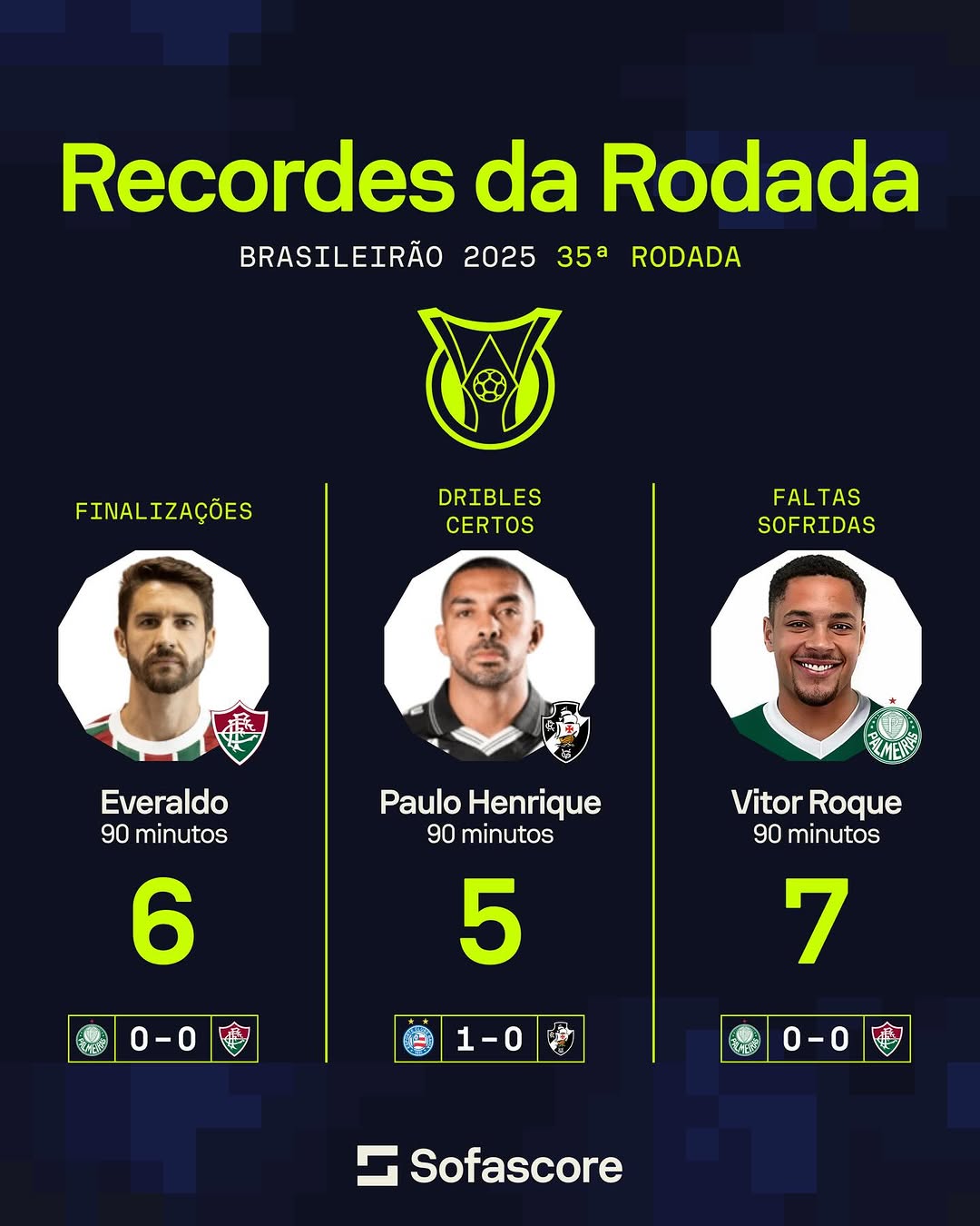 As maiores marcas em diversas estatísticas na 35ª rodada do Brasileirão 2025! 🔥🔥