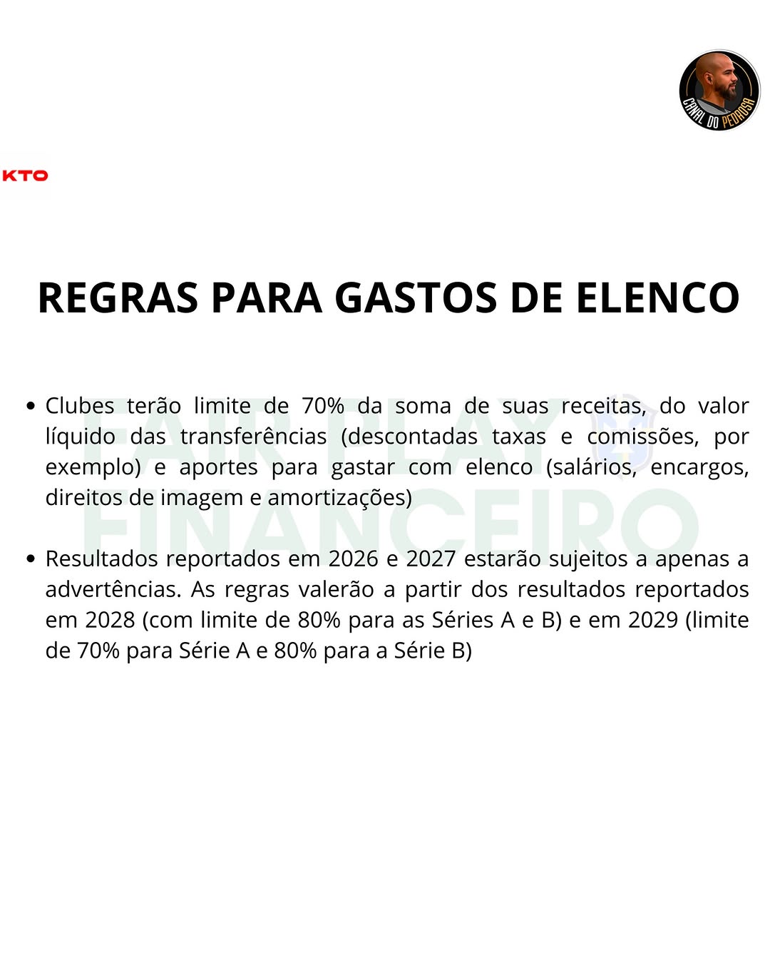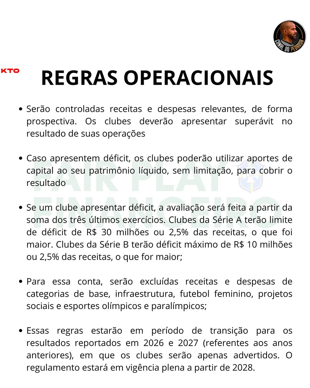 A CBF anunciou, nesta quarta-feira (26), o Sistema de Sustentabilidade Financeira do Futebol Brasileiro, conjunto de regras que serão aplicadas aos clubes das Séries A e B a partir de 1º de janeiro de 2026.
