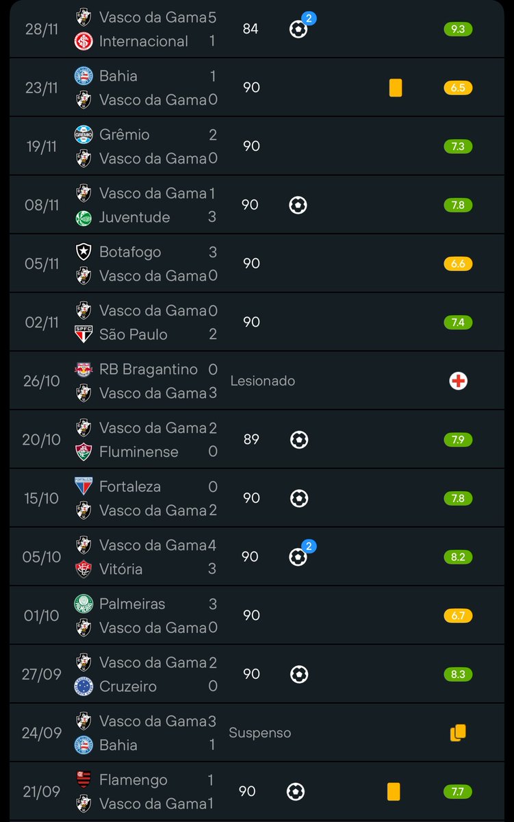 💎 | O jogador sub-19 do Vasco com mais gols marcados em uma edição de Brasileirão, superando Roberto Dinamite.
