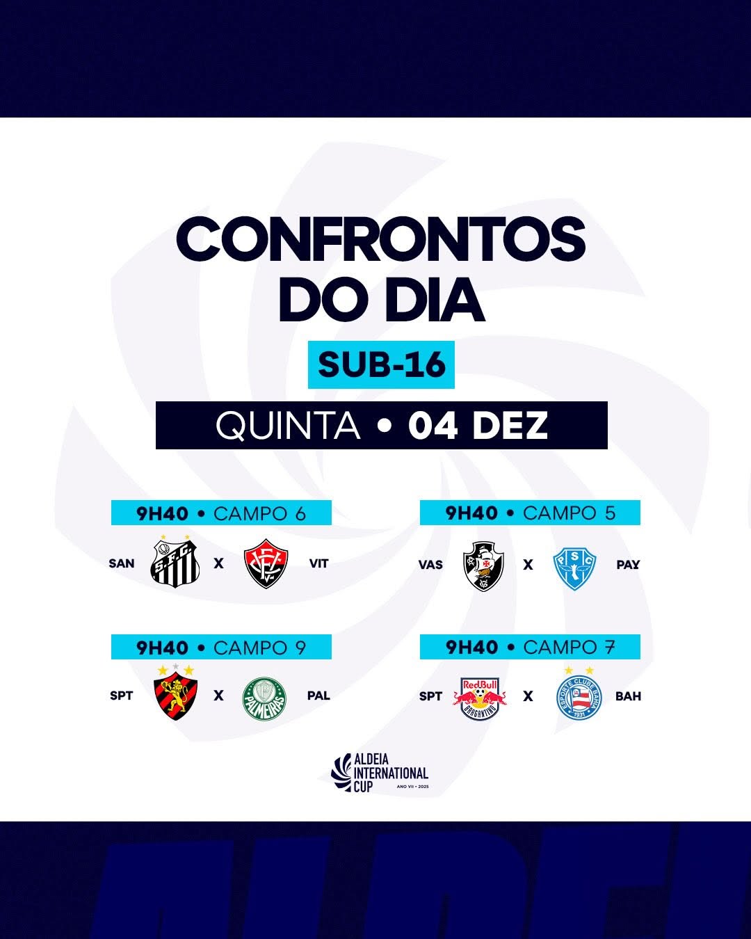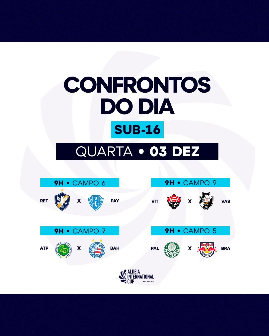 Os grupos e os confrontos já estão definidos no Sub-16 para a sétima edição da #AldeiaCup. ⚽️