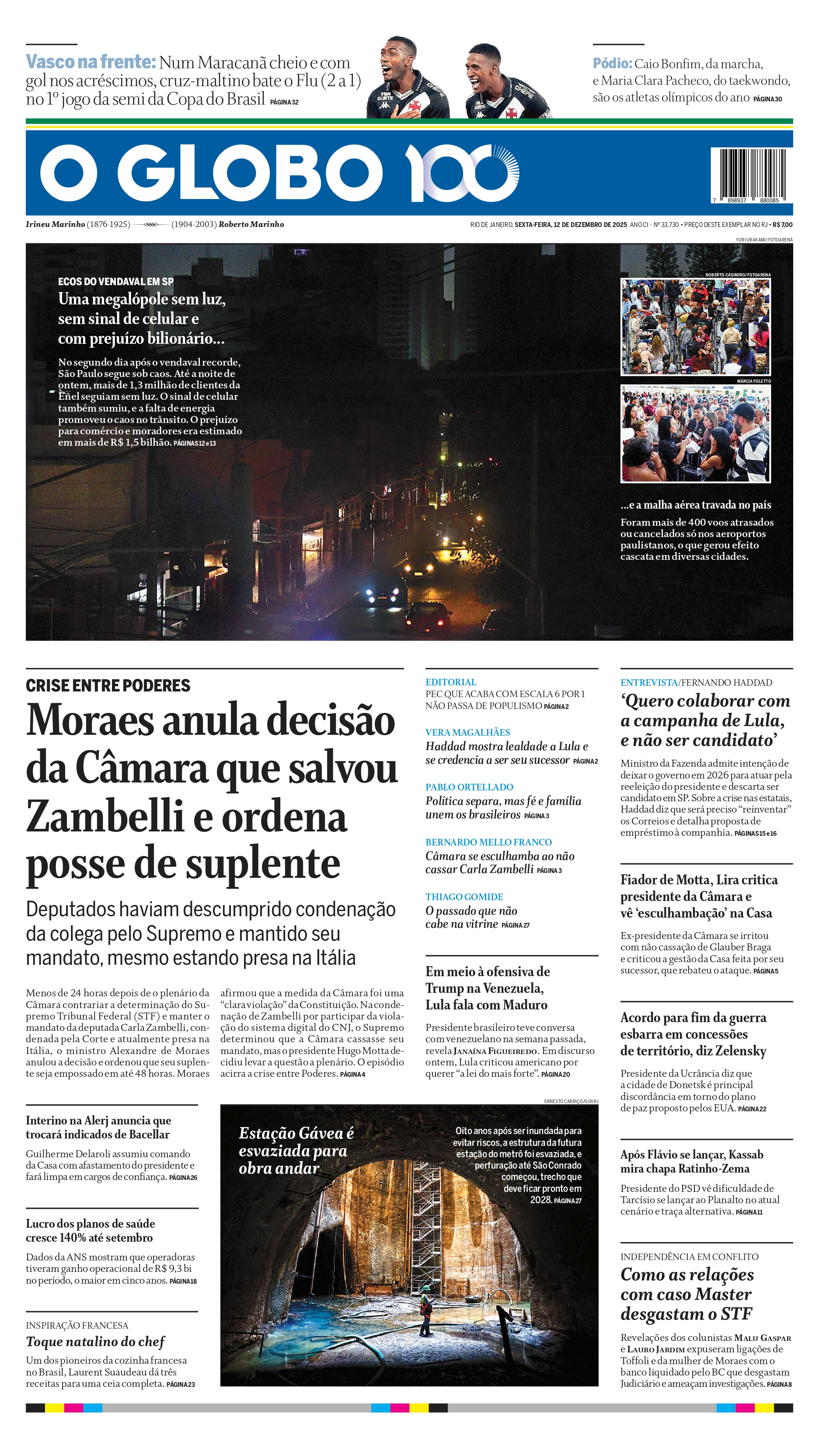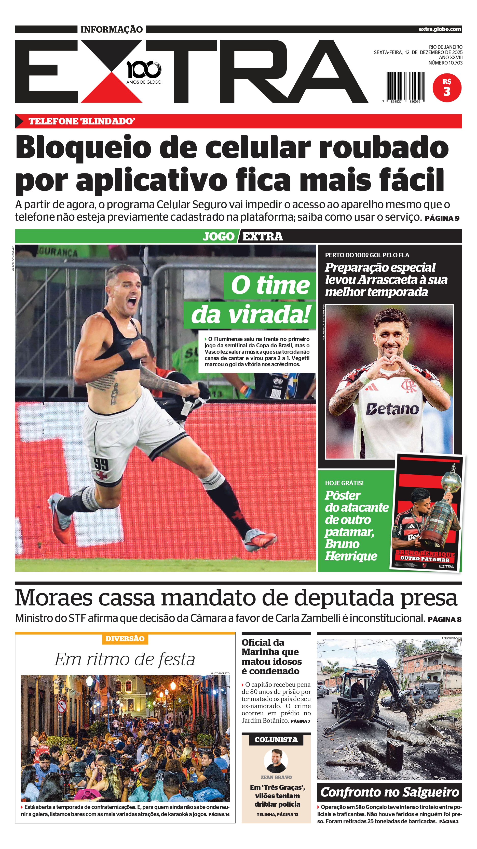 No jogo de ida da semifinal da Copa do Brasil, o Vasco venceu o Fluminense por 2 a 1, de virada, com gols de Rayan e Vegetti, ficando com a vantagem do empate para a partida de volta. Veja as capas dos jornais.