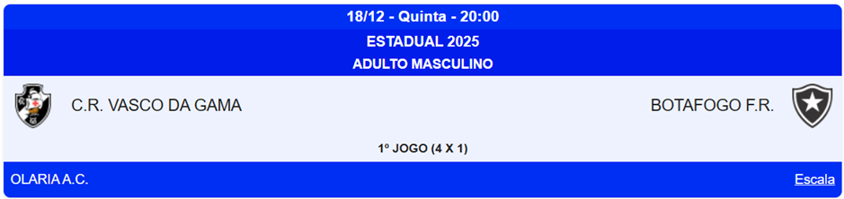 16/12/25 - Futsal: Vasco vence o Botafogo por 4 a 1 no 1º jogo da semfinal do Estadual