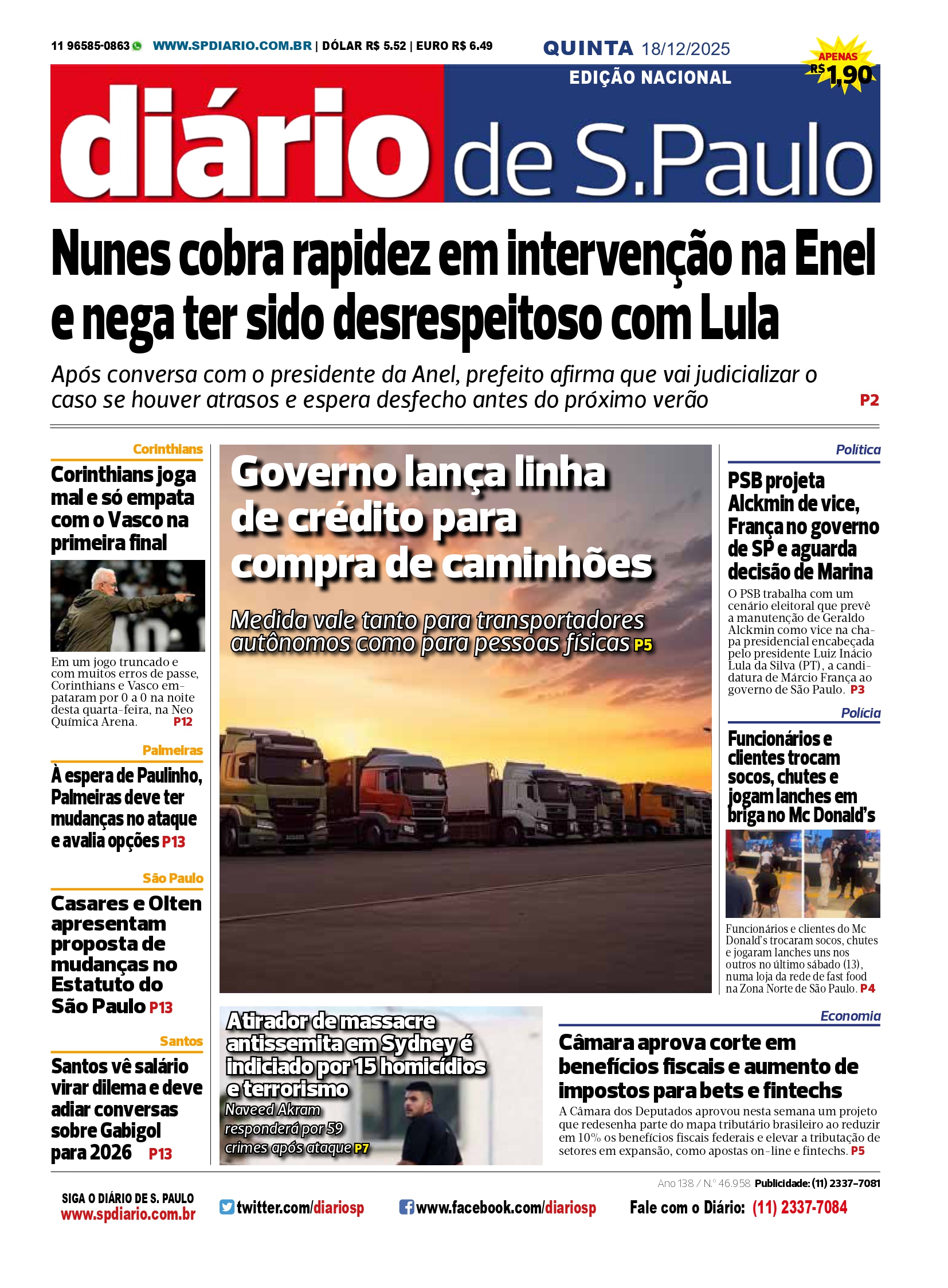 Veja as capas dos jornais após Corinthians 0 x 0 Vasco, 1º jogo da final da Copa do Brasil