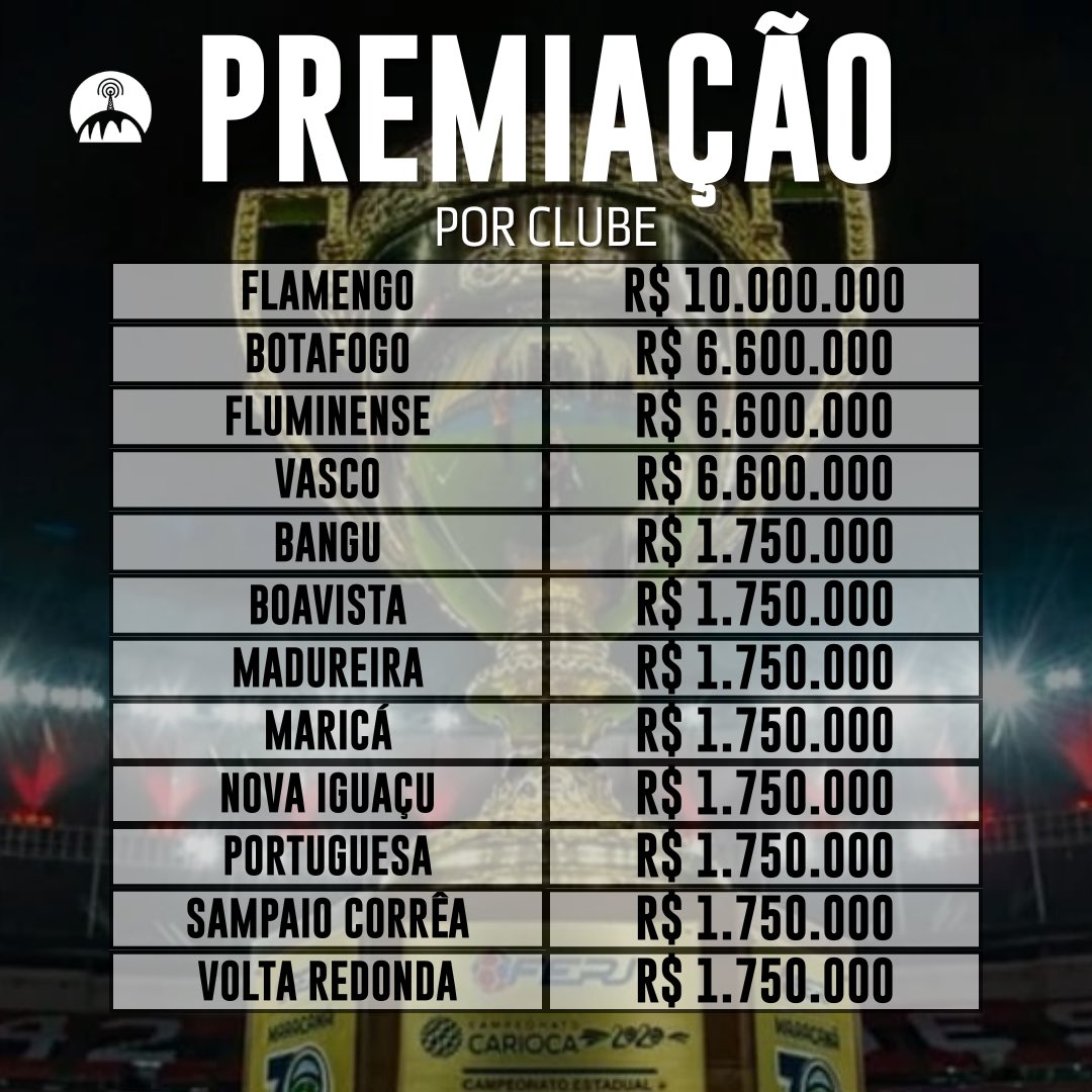 Em 2026, a FERJ premiará os clubes por desempenho e já destinará uma certa quantia aos clubes.