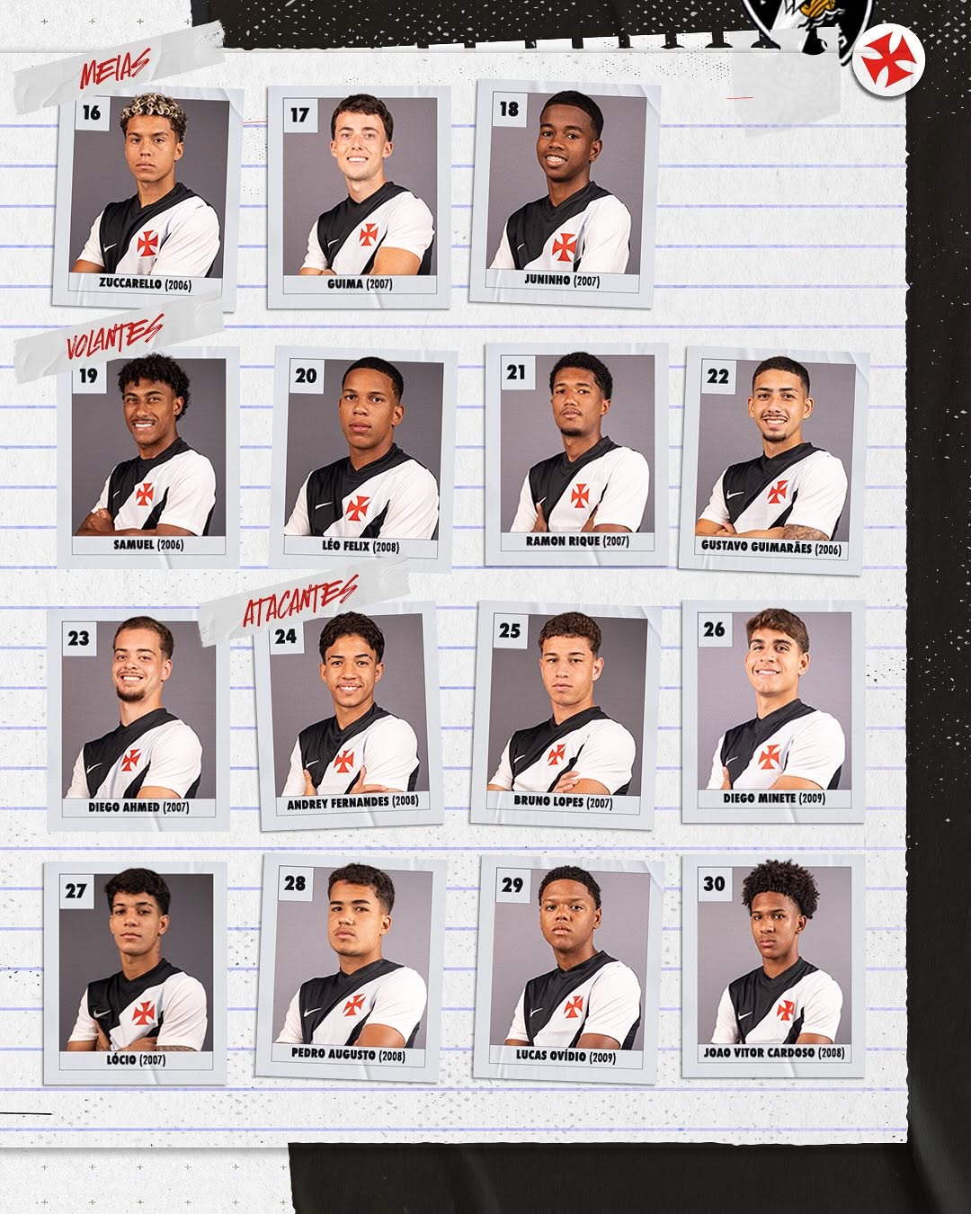 Sub-20: Vasco posta os inscritos da Copinha com a camisa da Nike