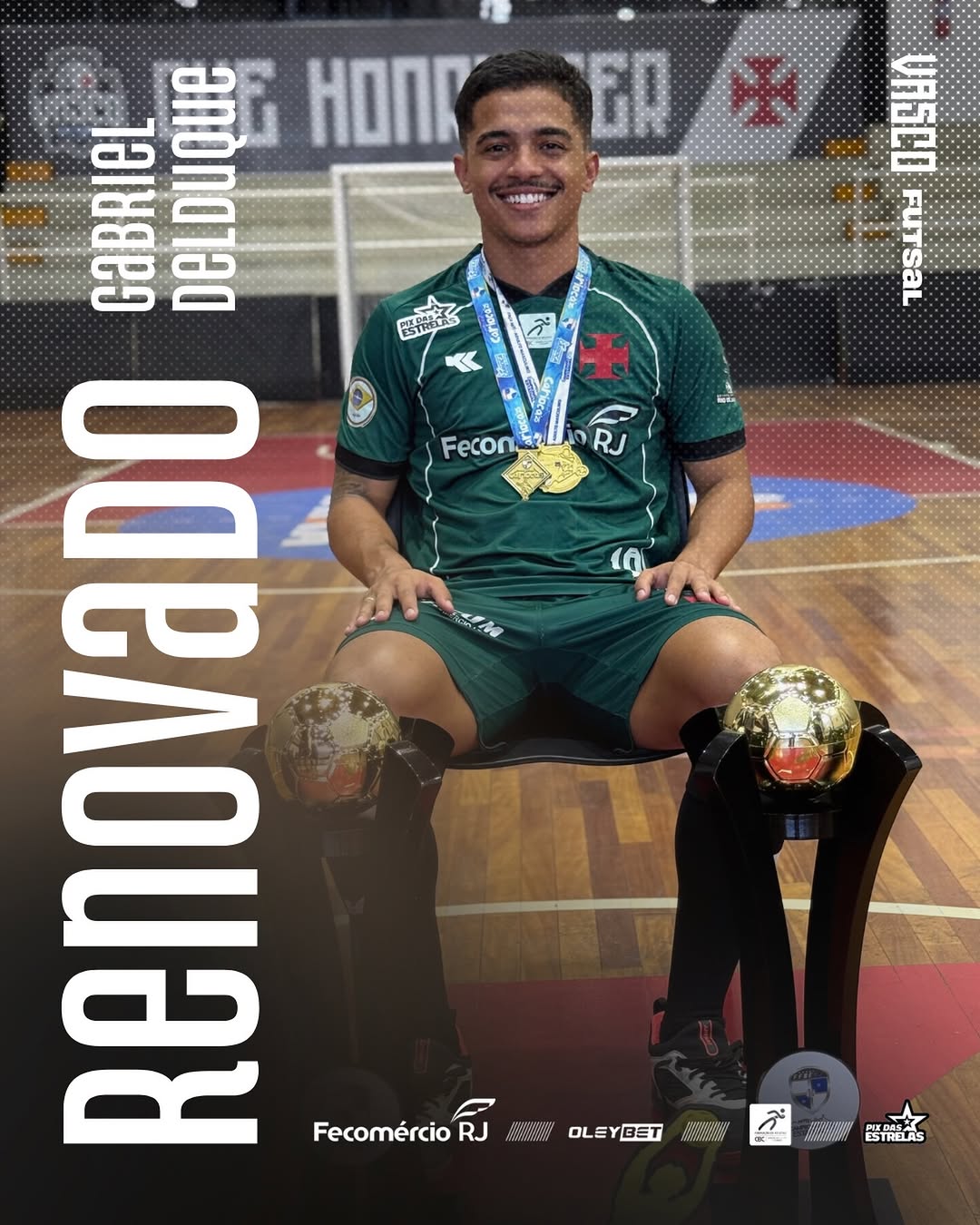 Futsal: Vasco anuncia a renovação do goleiro Gabriel Delduque