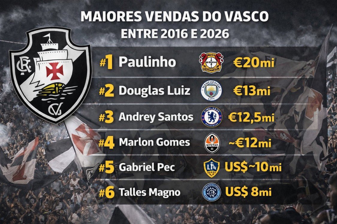 Confira o ranking das maiores vendas do Vasco desde 2016