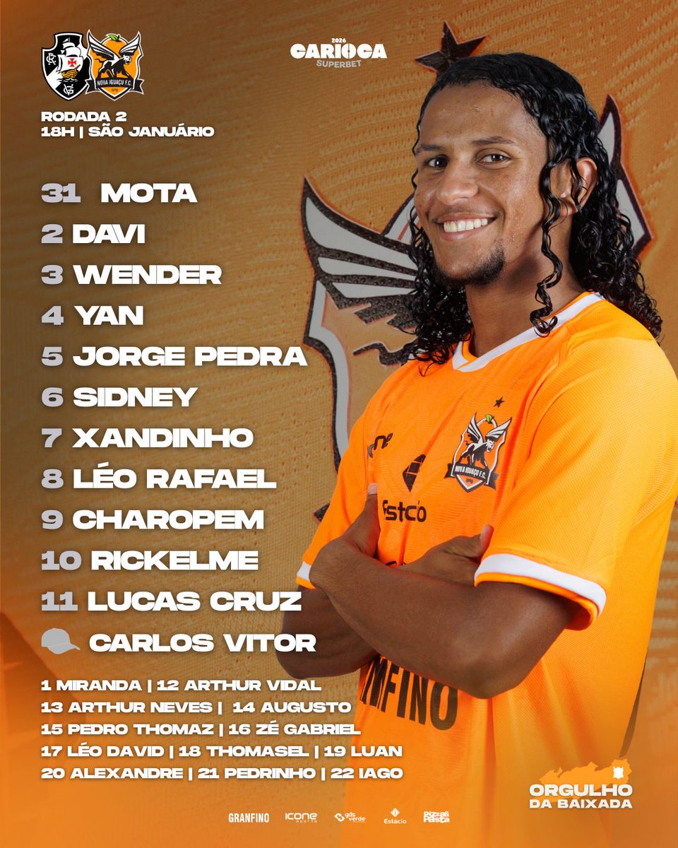 📋 | Nova Iguaçu escalado para enfrentar o Vasco.
