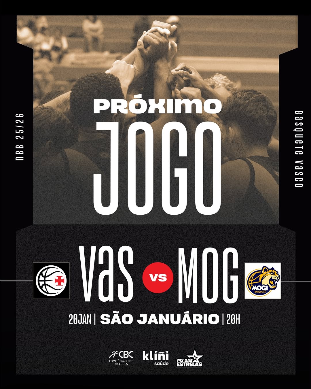 AMANHÃ é dia de São Januário! 💢 O Vasco da Gama entra em quadra às 20h para enfrentar o Mogi Basquete pelo NBB CAIXA 25/26.