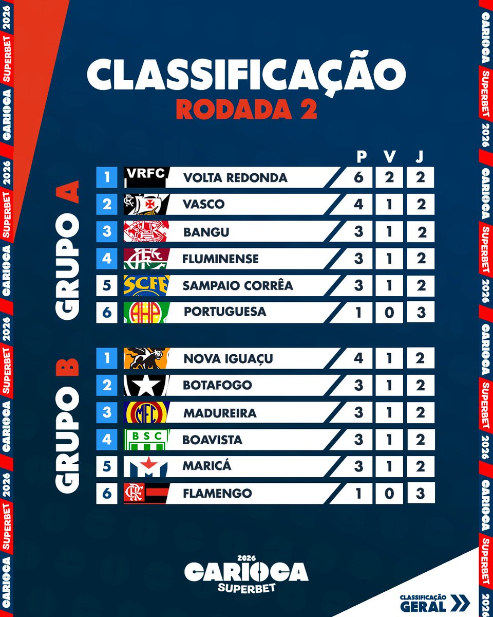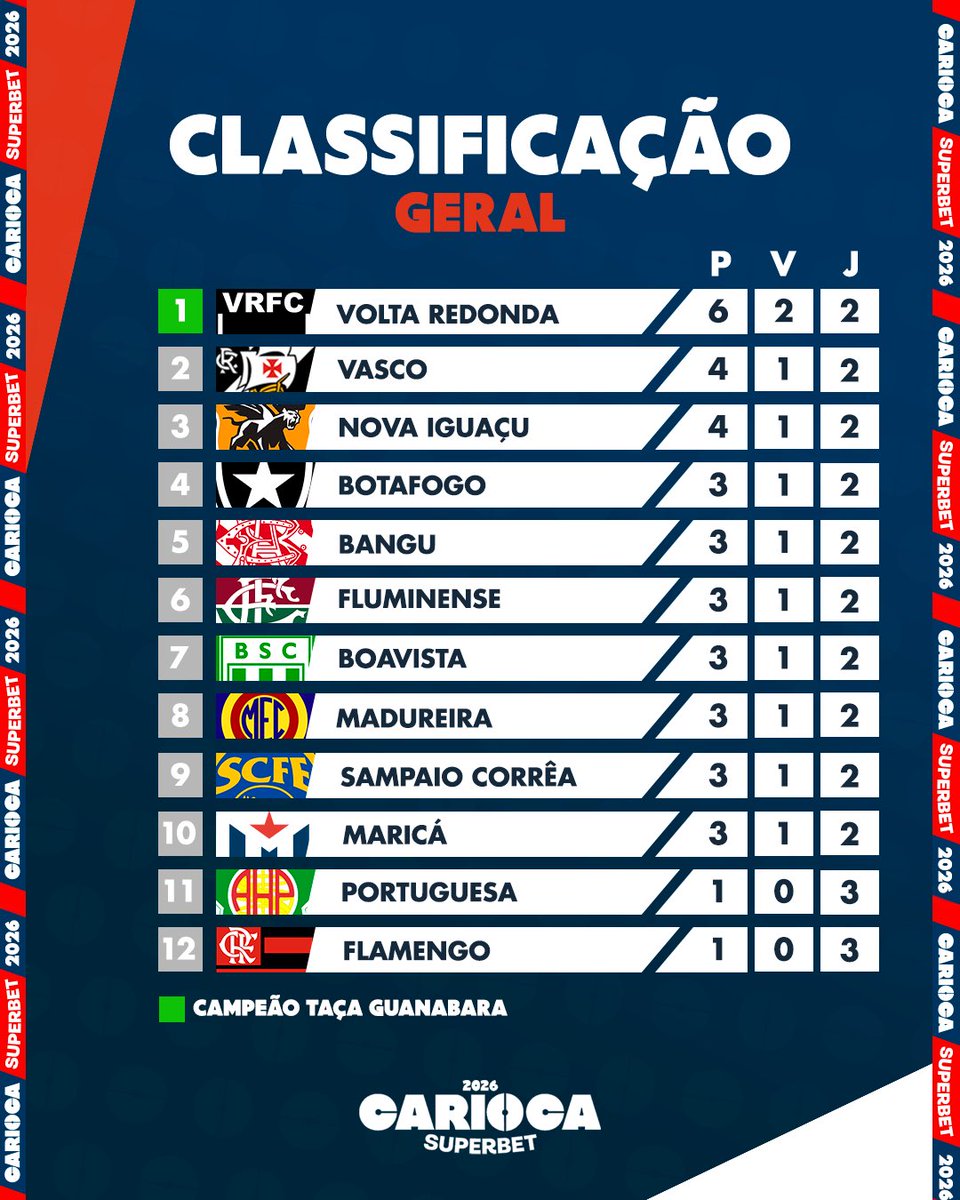 A tabela de classificação tá na pista! Mais uma rodada encerrada e além dela, passa pro lado e vem conferir a pontuação geral de olho na disputa da #TaçaGuanabara! 🏆