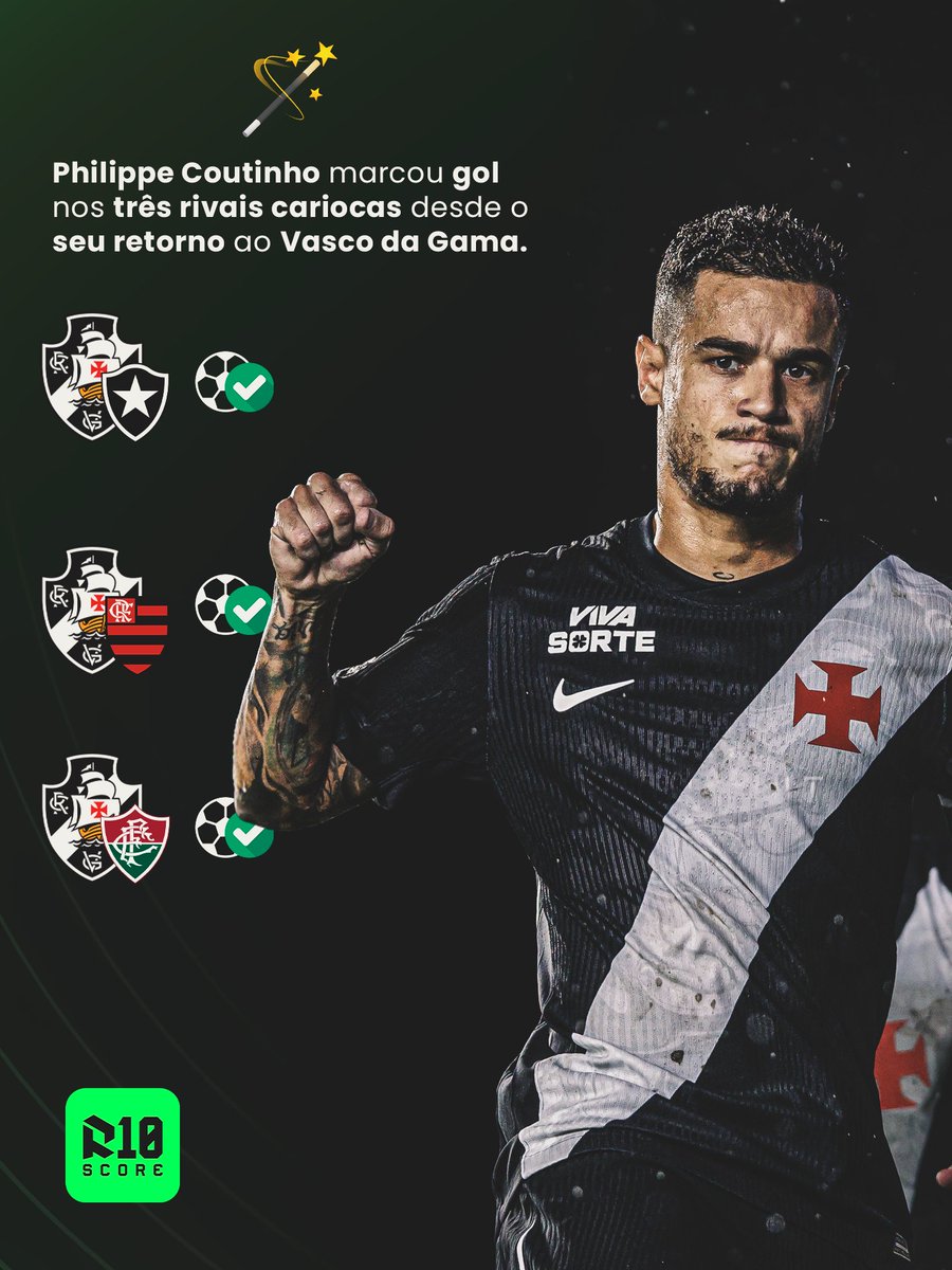 Philippe Coutinho marcou contra os 3 principais rivais do Vasco desde o seu retorno