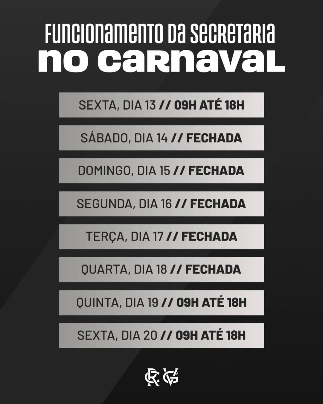 Atenção ao horário de atendimento aos sócios estatutários na secretaria durante o Carnaval.