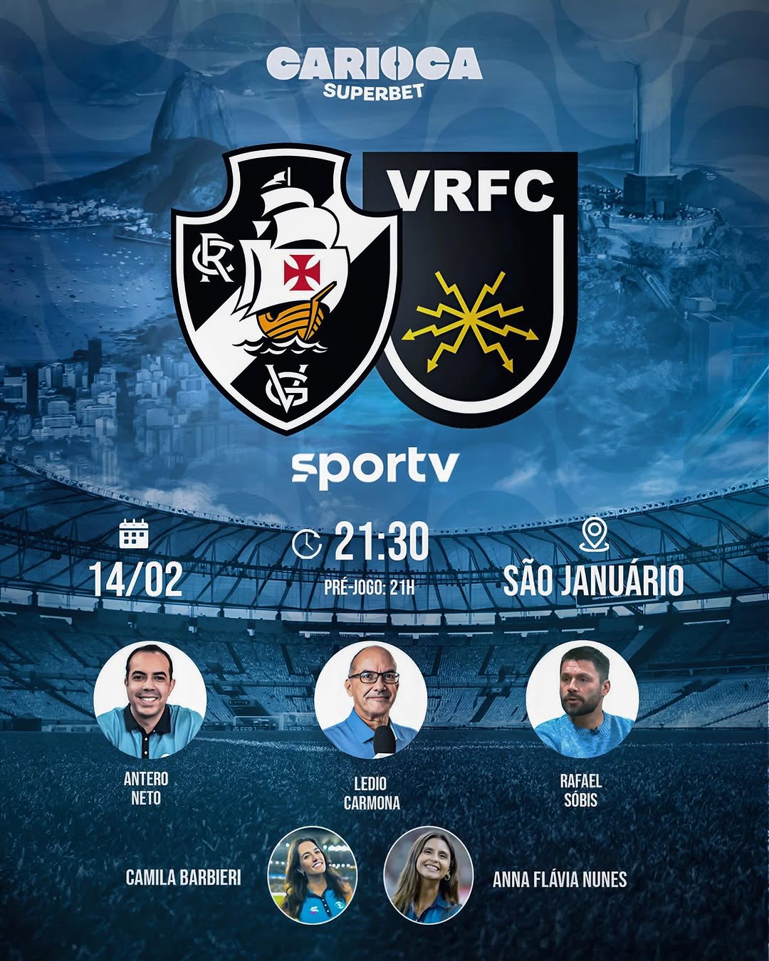 Confira os profissionais que trabalharão na transmissão de Vasco x Volta Redonda pela TV