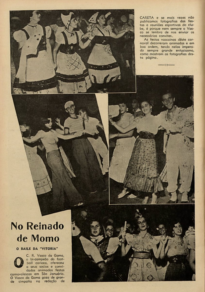O VASCO NO CARNAVAL - 1951 - No Reinado de Momo O BAILE DA VITÓRIA do bicampeão carioca de futebol em São Januário! (Revista Careta)