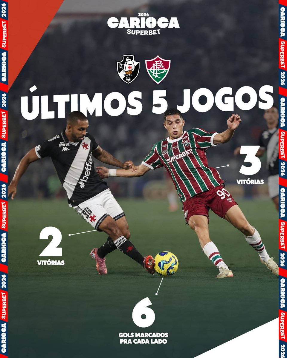 Os últimos 5️⃣ jogos entre Vasco e Fluminense têm uma pequena vantagem aos tricolores, mas ao mesmo tempo, uma eliminação sofrida pelos cruzmaltinos! ⚽️