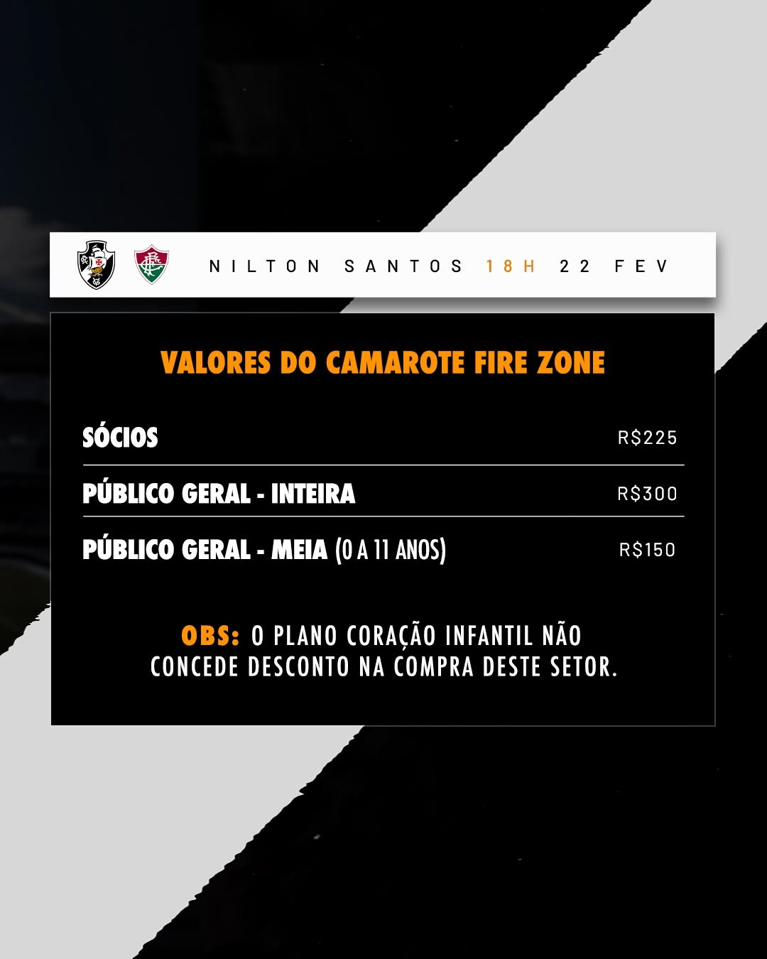 Informações de ingressos: Camarote Firezone – Vasco x Fluminense