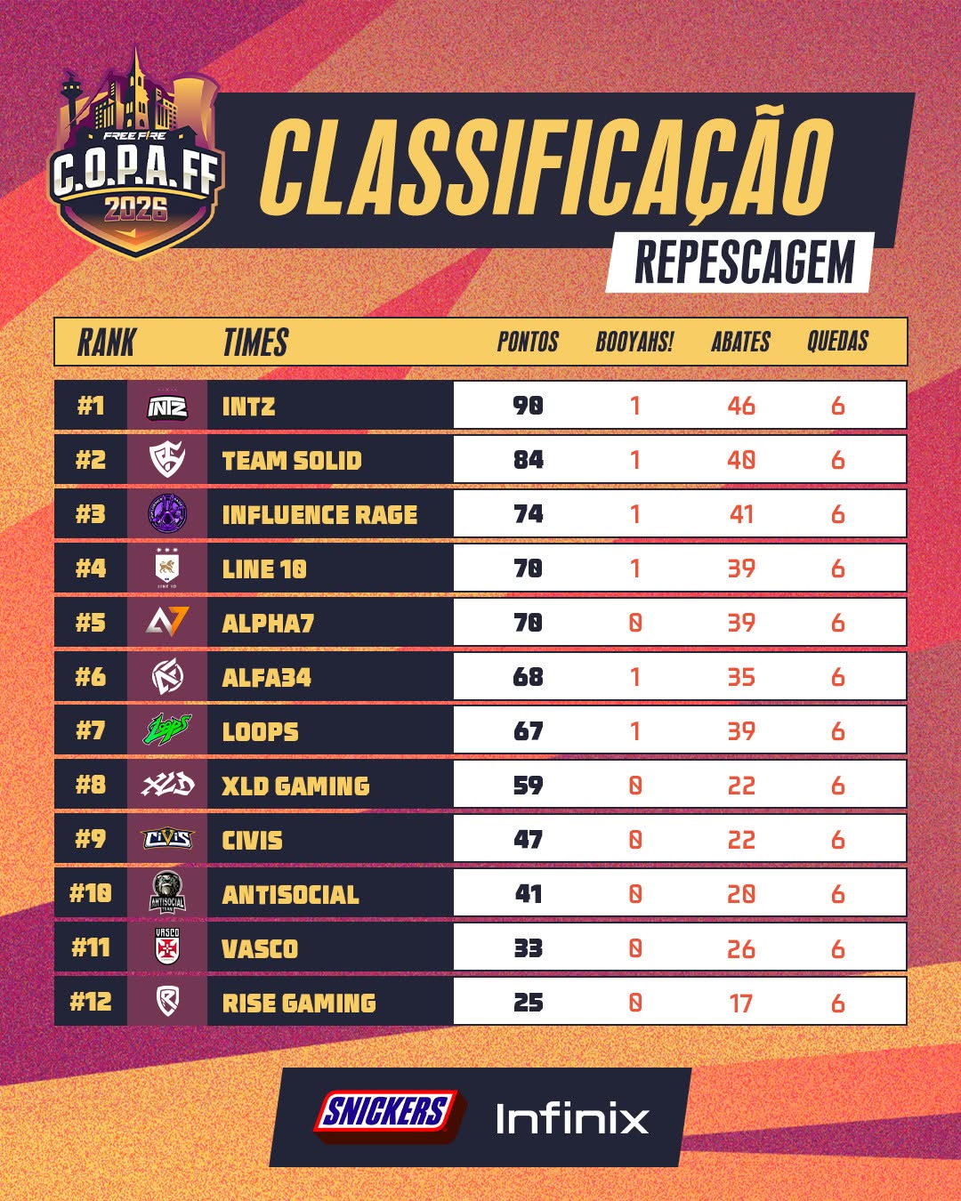 O dia de hoje foi absurdo, tropa. Nossa repescagem foi concluída e o top 6 se junta à GRANDE FINAL da #COPAFF 2026.