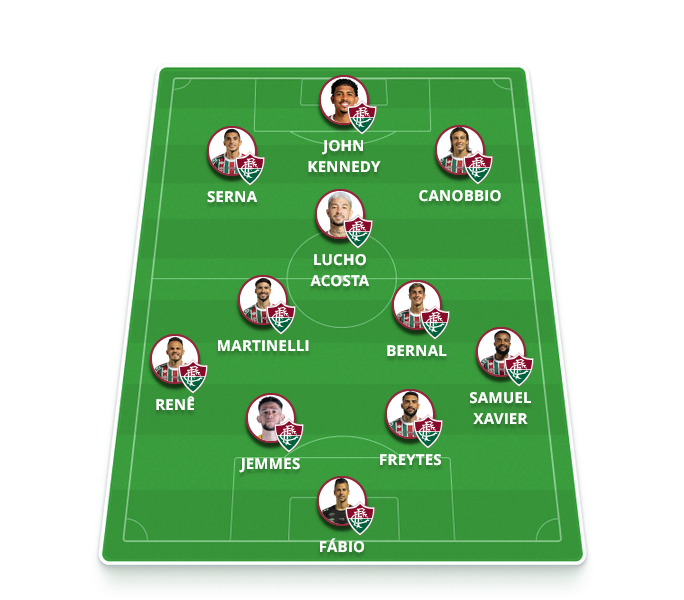 O provável Fluminense para o clássico: Fábio; Samuel Xavier, Freytes, Jemmes e Renê; Bernal, Martinelli e Lucho Acosta; Canobbio, Serna e John Kennedy.