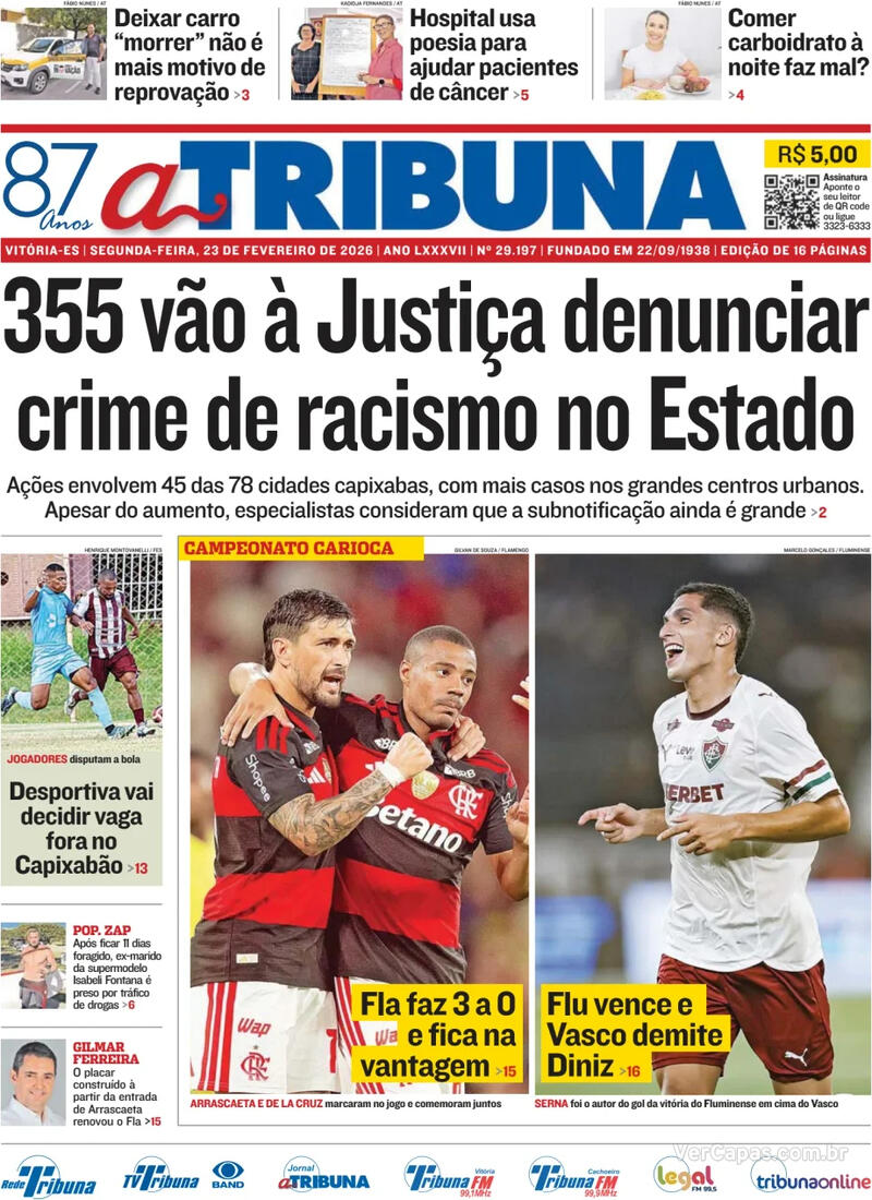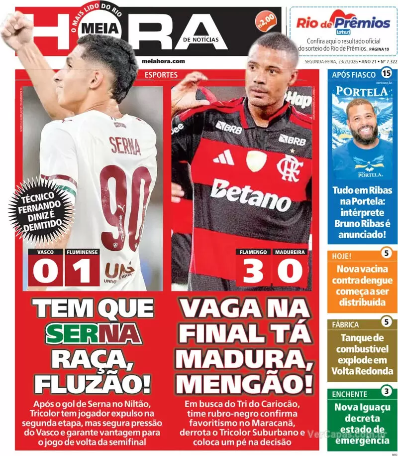 No 1º jogo da semifinal do Campeonato Carioca, o Vasco foi derrotado pelo Fluminense por 1 a 0 no Engenhão. Após a partida, Fernando Diniz deixou de ser o técnico do Vasco. Veja as capas dos jornais.