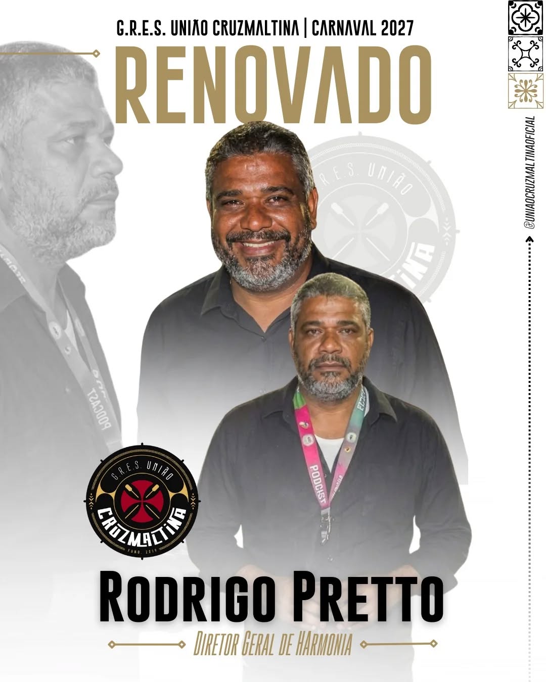 Rodrigo Pretto segue à frente da Direção Geral de Harmonia no Carnaval 2027.