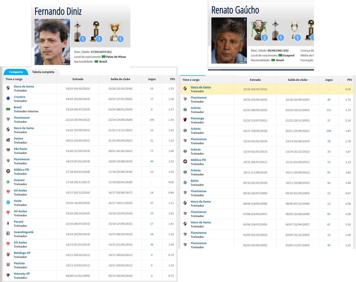 Estava olhando a comparando a carreira de Fernando Diniz e Renato Gaucho.