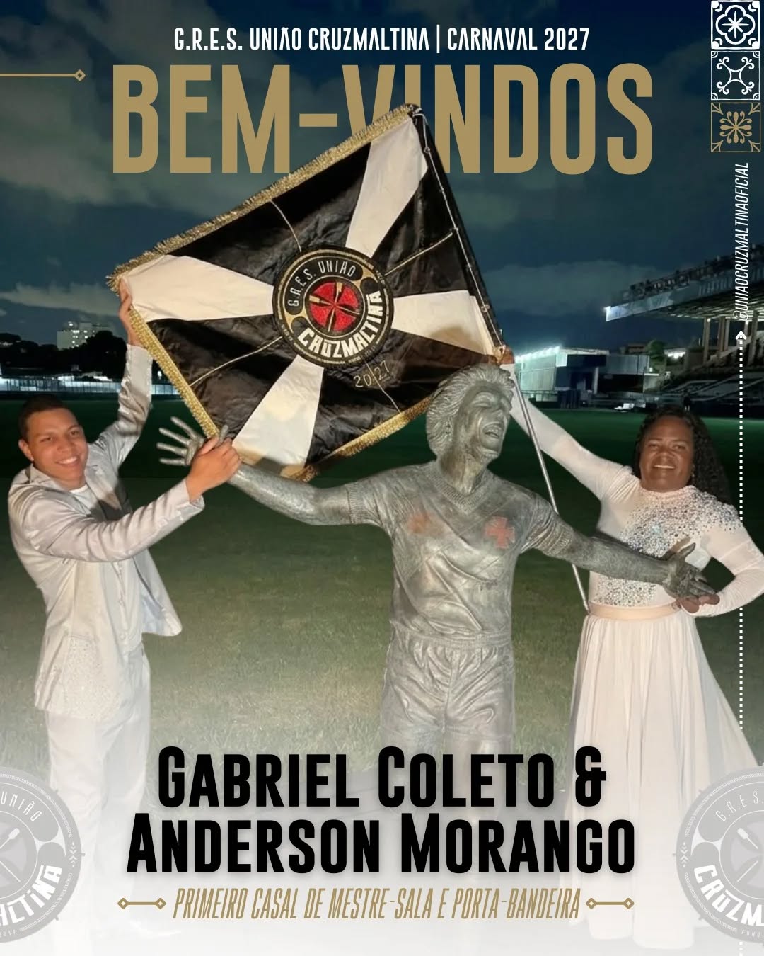💢| Com a benção do nosso Ãdolo maior, Roberto Dinamite, celebramos a chegada do primeiro casal de Mestre-Sala e Porta-Bandeira: Gabriel Coleto e Anderson Morango para o Carnaval 2027.