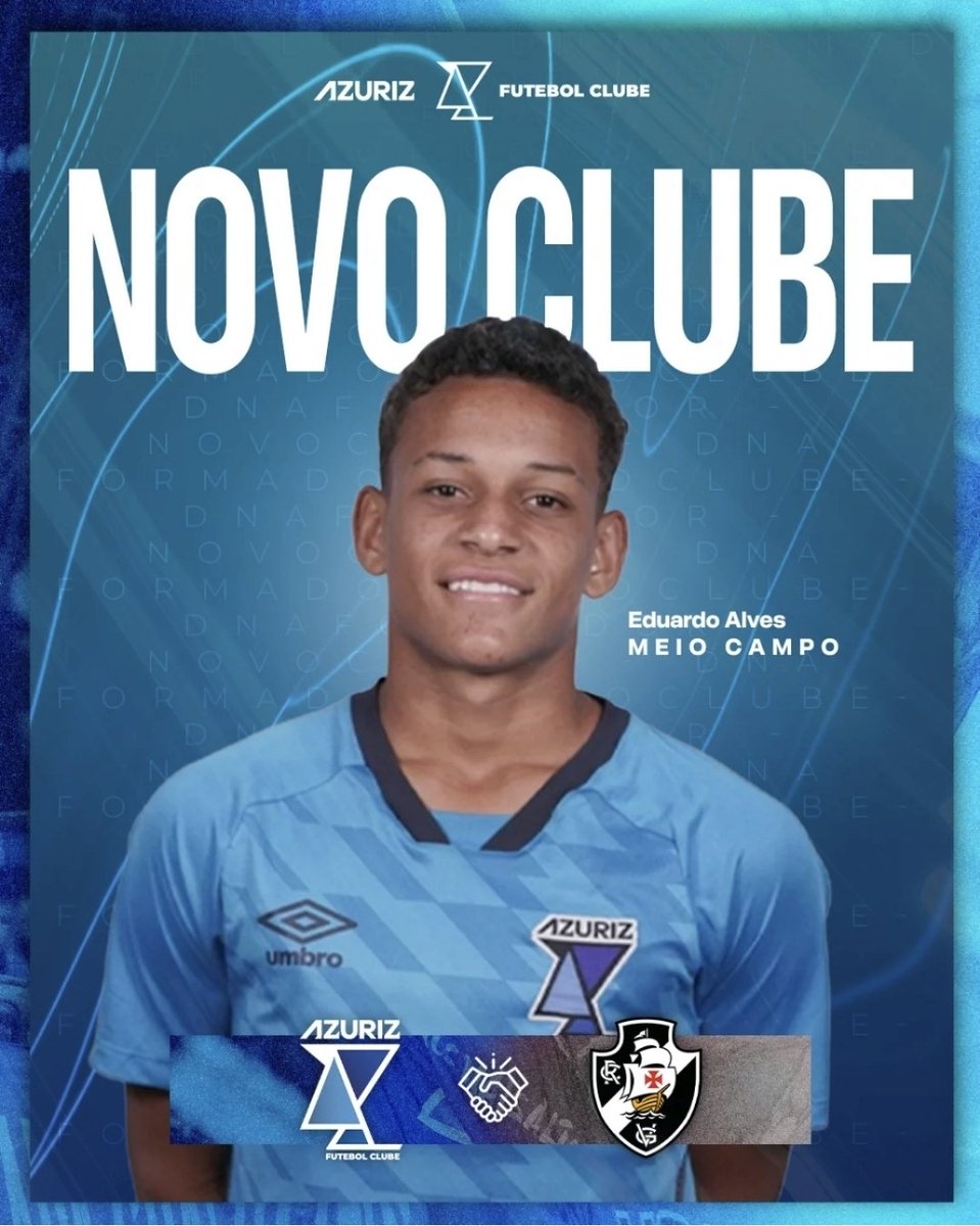 O Vasco acaba de contratar em definitivo o meia-atacante Eduardo Alves junto ao Azuriz, do Paraná. O jovem já está no Rio e integra o elenco do Sub-15. Chamado de Dudu, ele foi artilheiro do BG Prime Sub-14 2025. O time paranaense fica com uma porcentagem dos direitos.