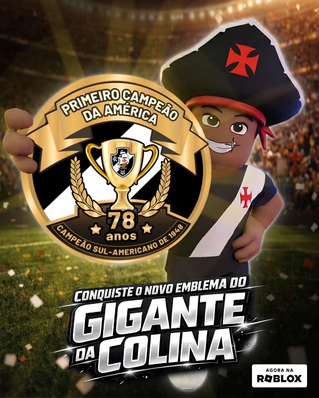 Para celebrar esse marco eterno, preparamos uma ativação exclusiva no Hub do Vasco no Roblox: