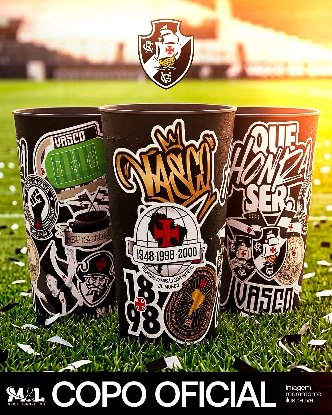 E pra completar a experiência, o #CopoDoJogo oficial chega junto com modelos que carregam a história do Gigante da Colina: de São Januário às conquistas que marcaram época.
