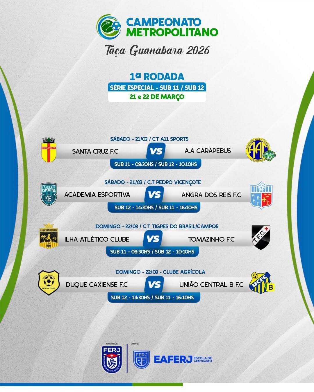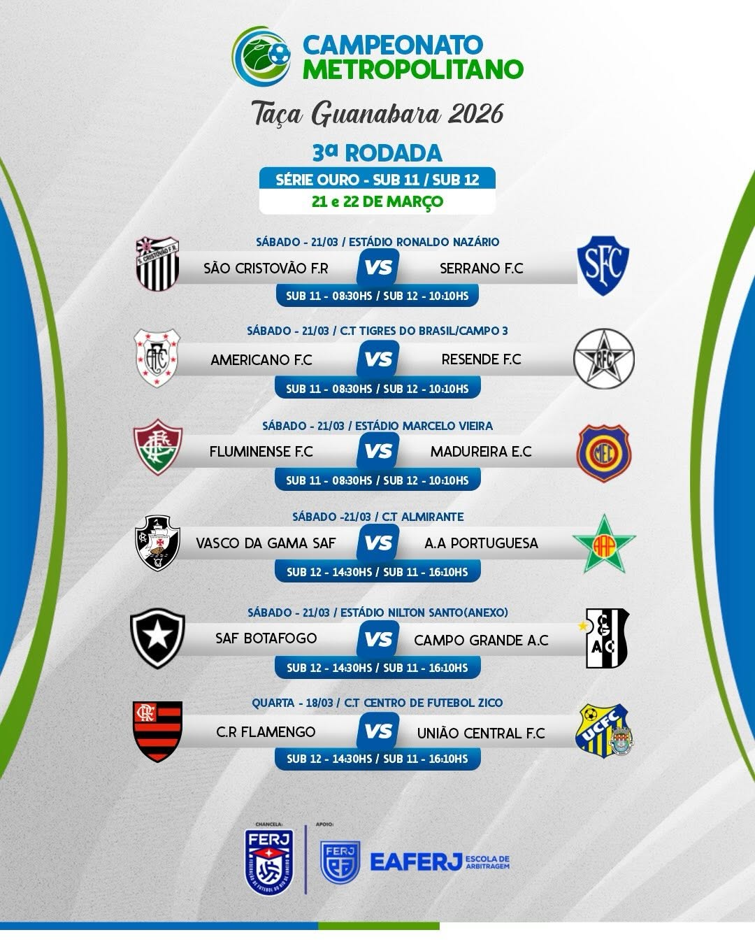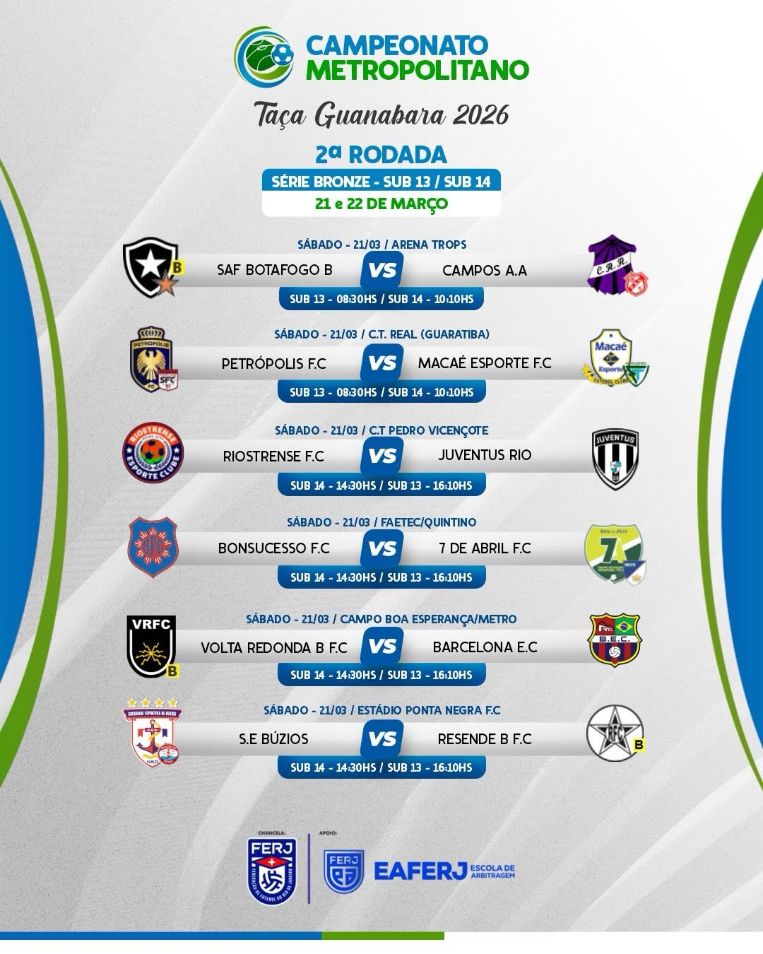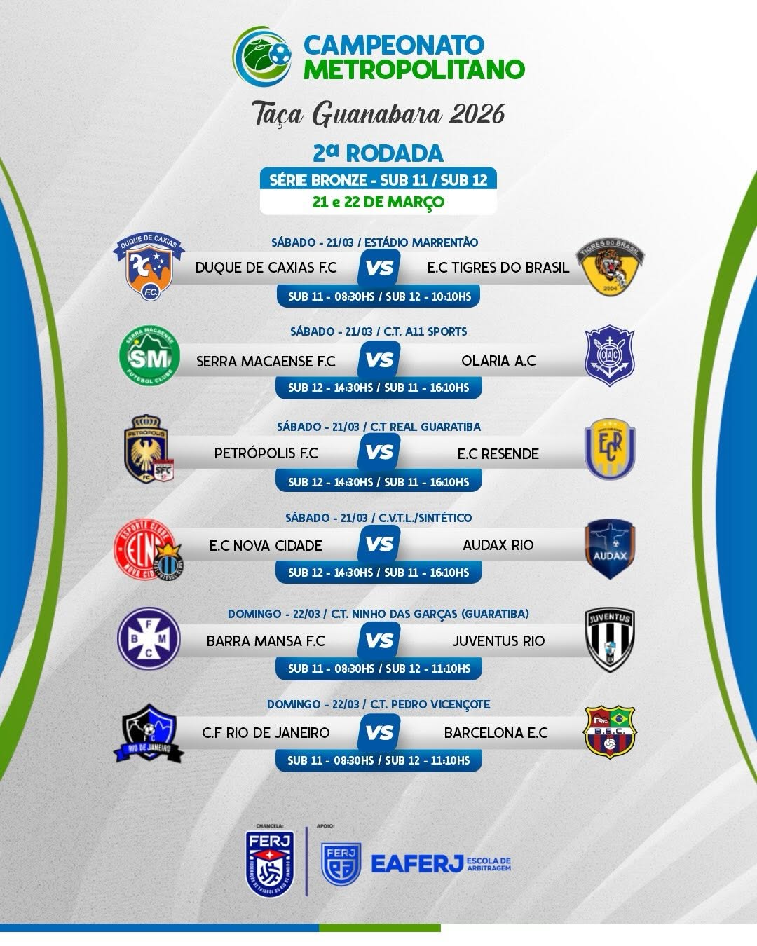 As categorias Sub-11, Sub-12, Sub-13 e Sub-14 entram em campo pelas Séries Ouro, Prata, Bronze e Especial, movimentando mais uma rodada repleta de jogos, oportunidades e desenvolvimento.