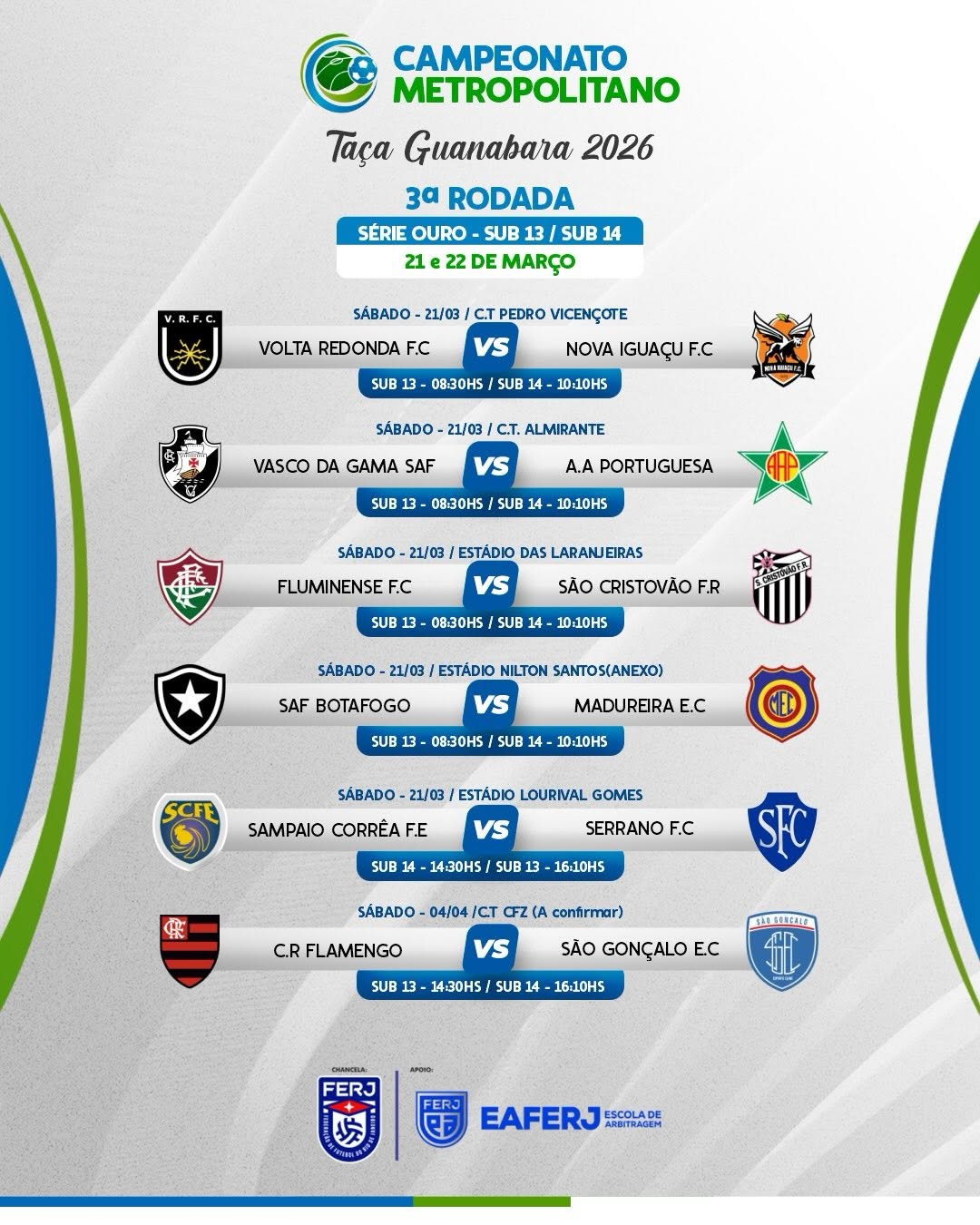 Confira o cronograma completo e acompanhe de perto mais um grande fim de semana de futebol de base!