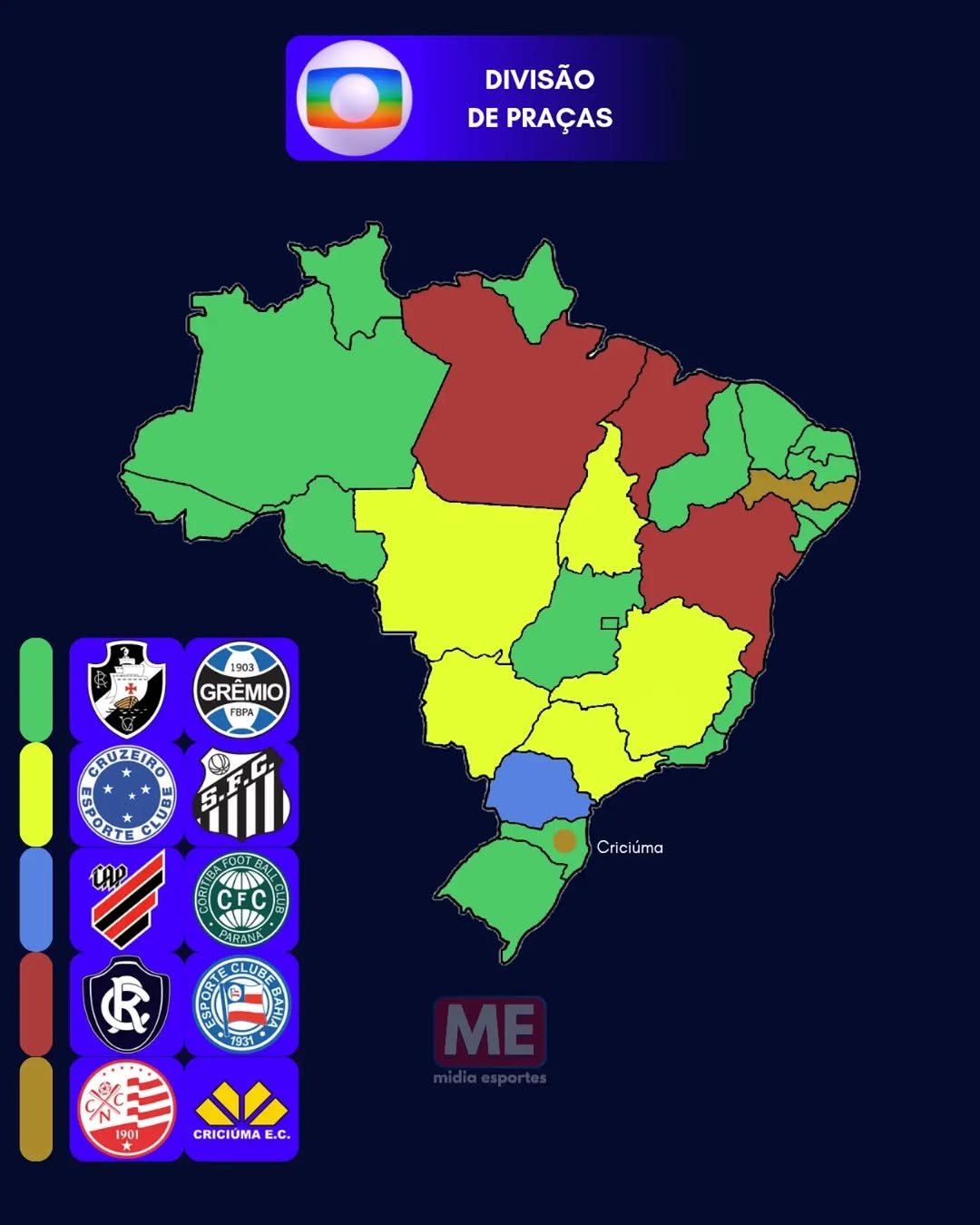 TV Globo exibirá Vasco x Grêmio para mais da metade dos estados do Brasil; veja a divisão das praças