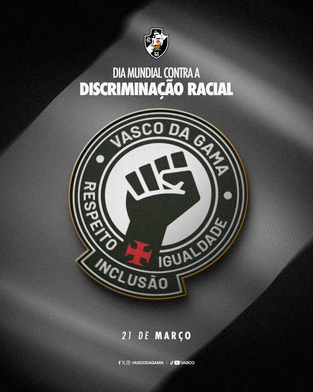 Vasco faz postagem por ocasião do Dia Mundial contra a Discriminação Racial