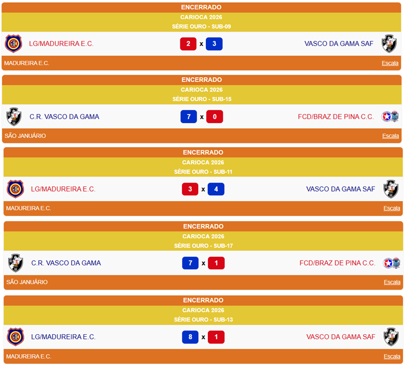 Futsal Base: Vasco venceu 4 dos seus 5 jogos de sábado pelo Carioca