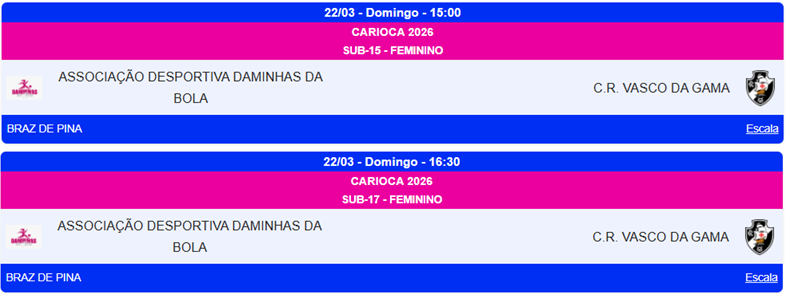 Vasco estreia nos Cariocas Sub-15 e Sub-17 de futsal feminino neste domingo, contra o Daminhas da Bola, a partir das 15h, fora de casa.