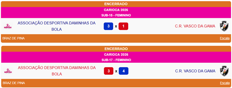 Futsal Feminino Base: Na estreia do Carioca, Vasco vence o Daminhas da Bola no Sub-17 e perde no Sub-15