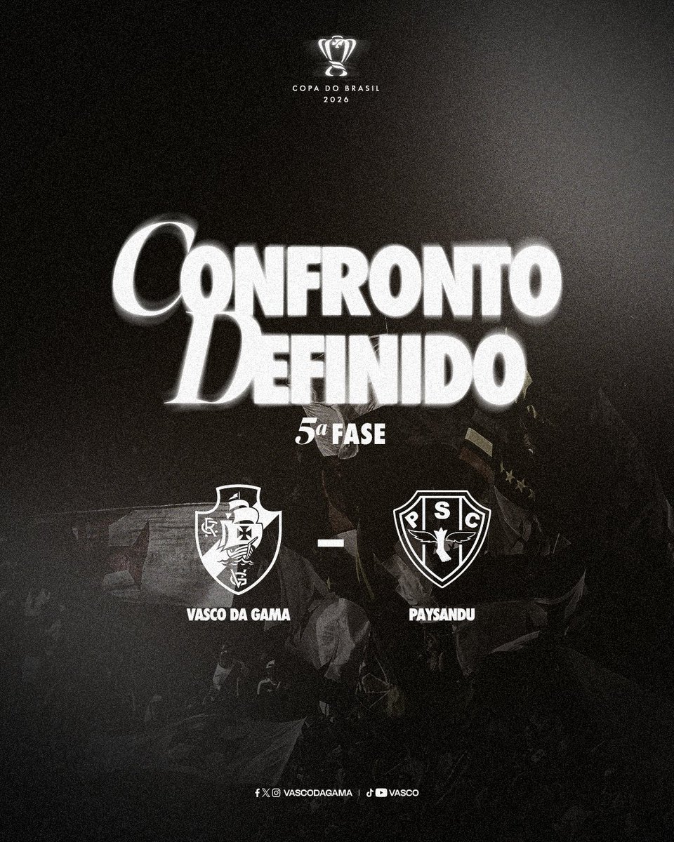 OFICIAL! O Vasco da Gama enfrentará o Paysandu-PA na 5ª fase da Copa do Brasil.