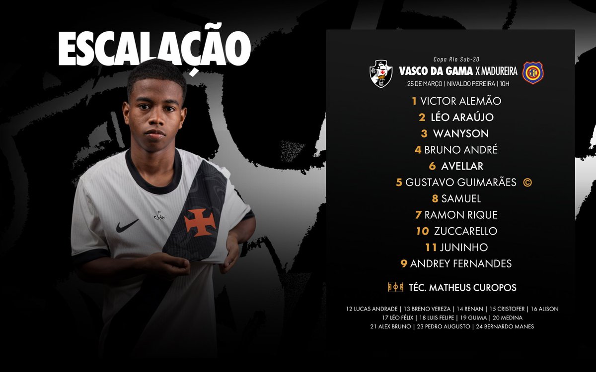 📋 Sub-20 escalado para o duelo com o Madureira, pela 5ª rodada da Copa Rio!