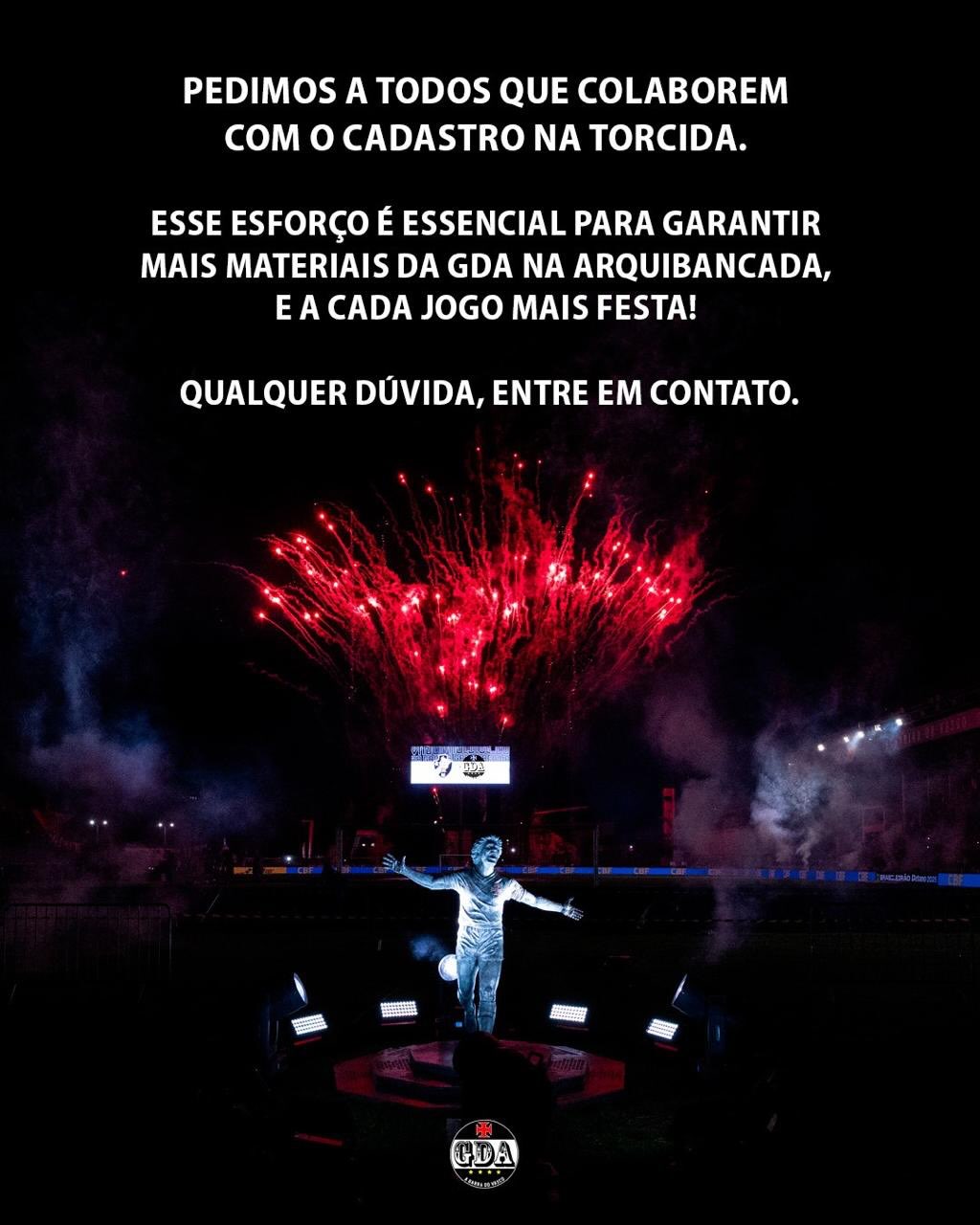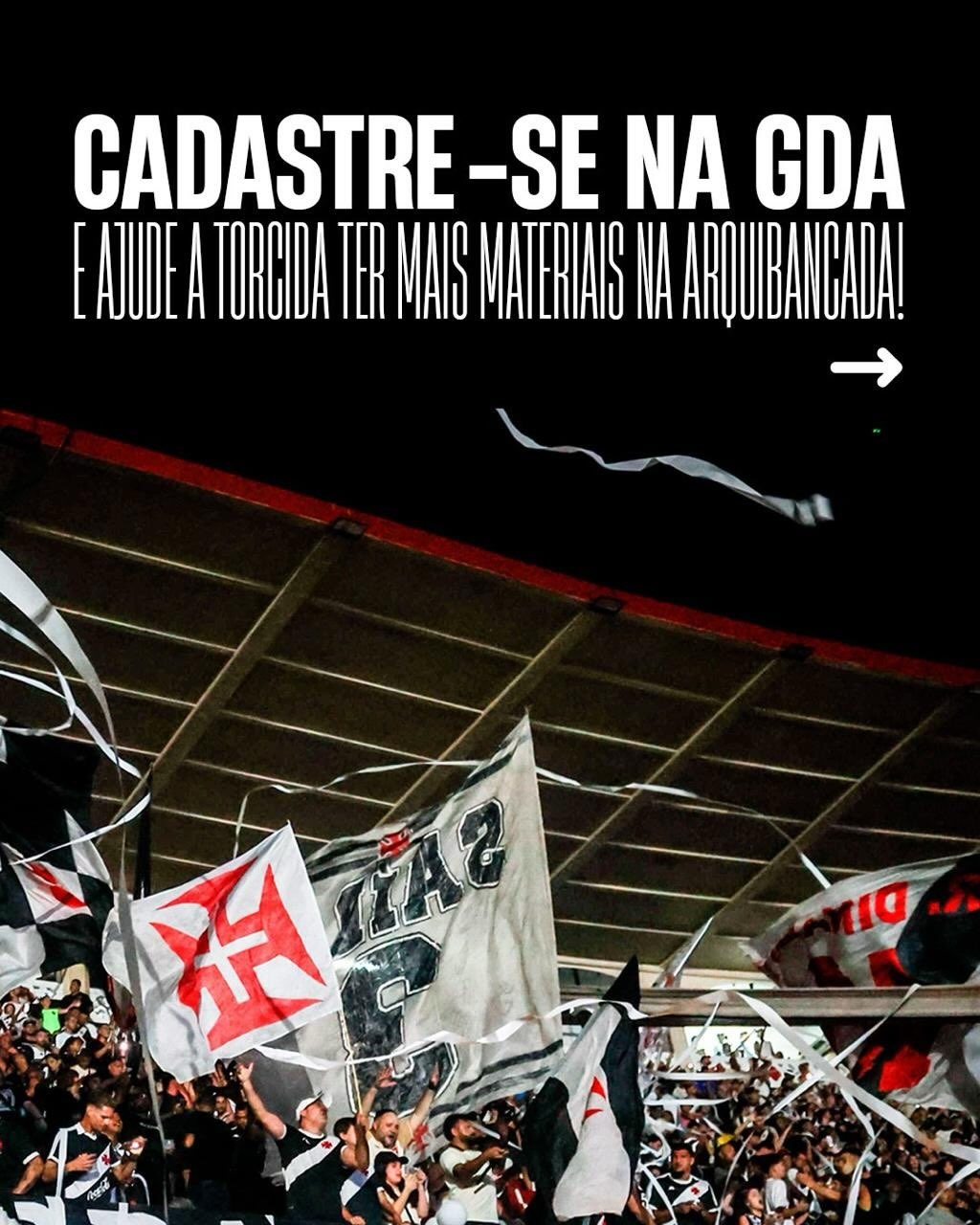 Estamos com uma plataforma de cadastros prática, rápida e feita especialmente para você, que quer fazer parte dessa missão de tornar nosso apoio ao Vasco da Gama com mais festa. Com o seu cadastro, conseguimos colocar mais materiais na arquibancada e fazer todo jogo um grande espetáculo.
