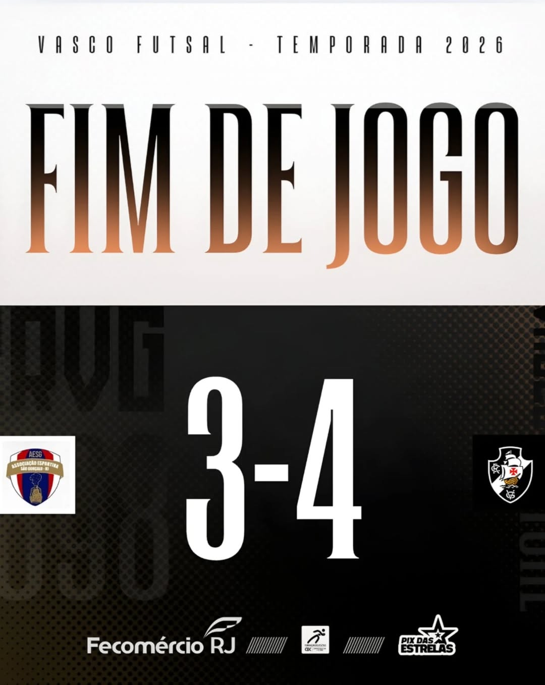 O Vasco conquistou uma importante vitória no Campeonato Carioca de Futsal na noite desta rodada. Em um duelo movimentado e cheio de alternativas, a equipe cruzmaltina superou o São Gonçalo por 4 a 3, fora de casa, mostrando poder de reação, intensidade e eficiência ofensiva.