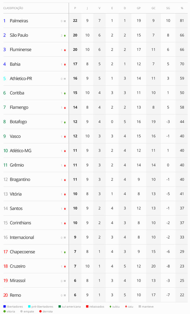 Vasco cai para a 9ª colocação após a derrota para o Botafogo; veja a classificação do Brasileiro