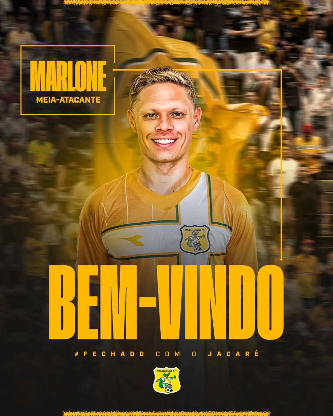De olho no restante da temporada 2026, o Brasiliense anunciou, por meio das redes sociais do clube, a contratação do meia-atacante Marlone, de 34 anos. Em Brasília, o jogador, que tem passagens por grandes clubes do futebol brasileiro como Vasco, Corinthians e Cruzeiro, reeditará a parceria com Jean Pyerre: antes do Jacaré, os dois estavam no Ypiranga-RS.