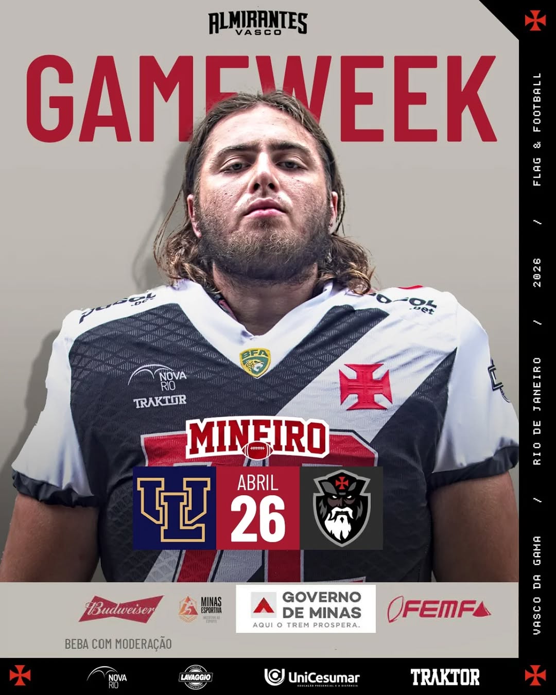 Futebol Americano: Vasco enfrenta o Uberlândia neste domingo às 14h pelo Campeonato Mineiro