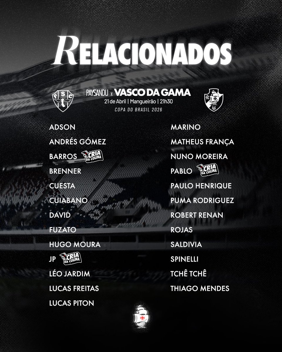 đź“‹ Relacionados do Vasco da Gama para enfrentar o Paysandu na estreia da Copa do Brasil đź’˘